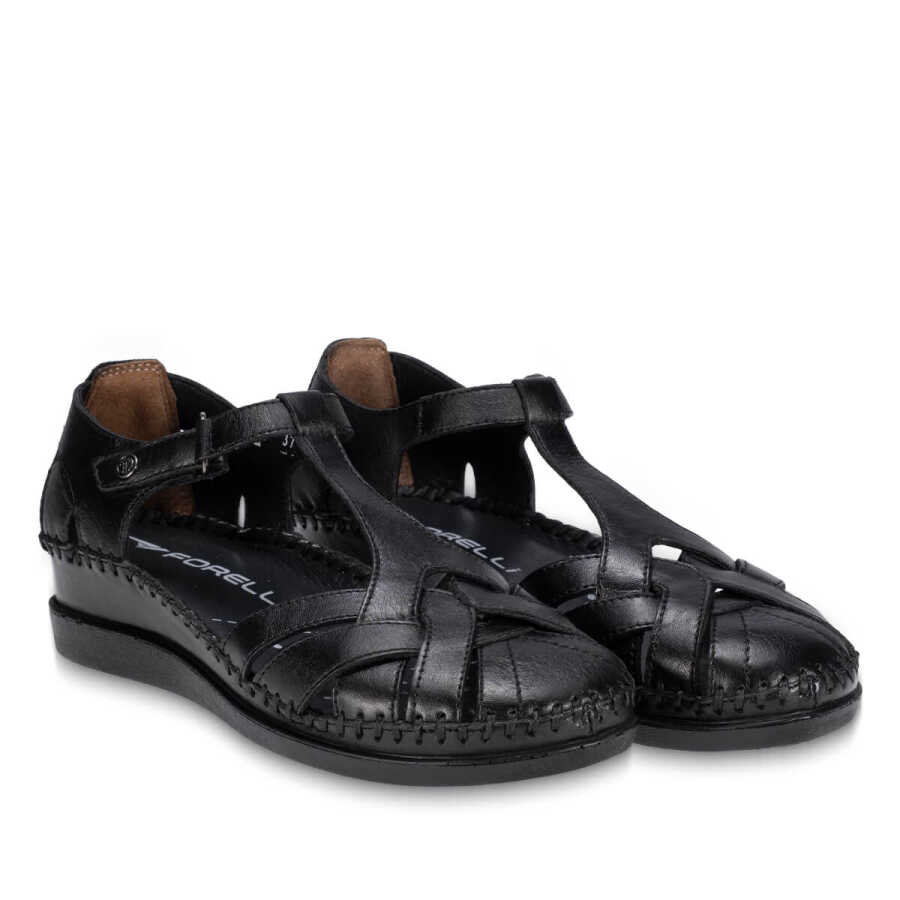 Forelli 22526 LARNI Siyah Hakiki Deri Kadın Sandalet