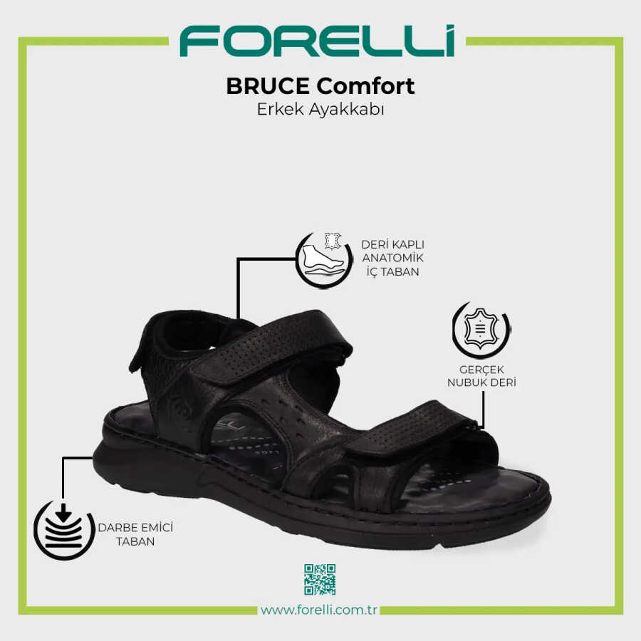 Forelli 40526 BRUCE Siyah Nubuk Deri Erkek Sandalet
