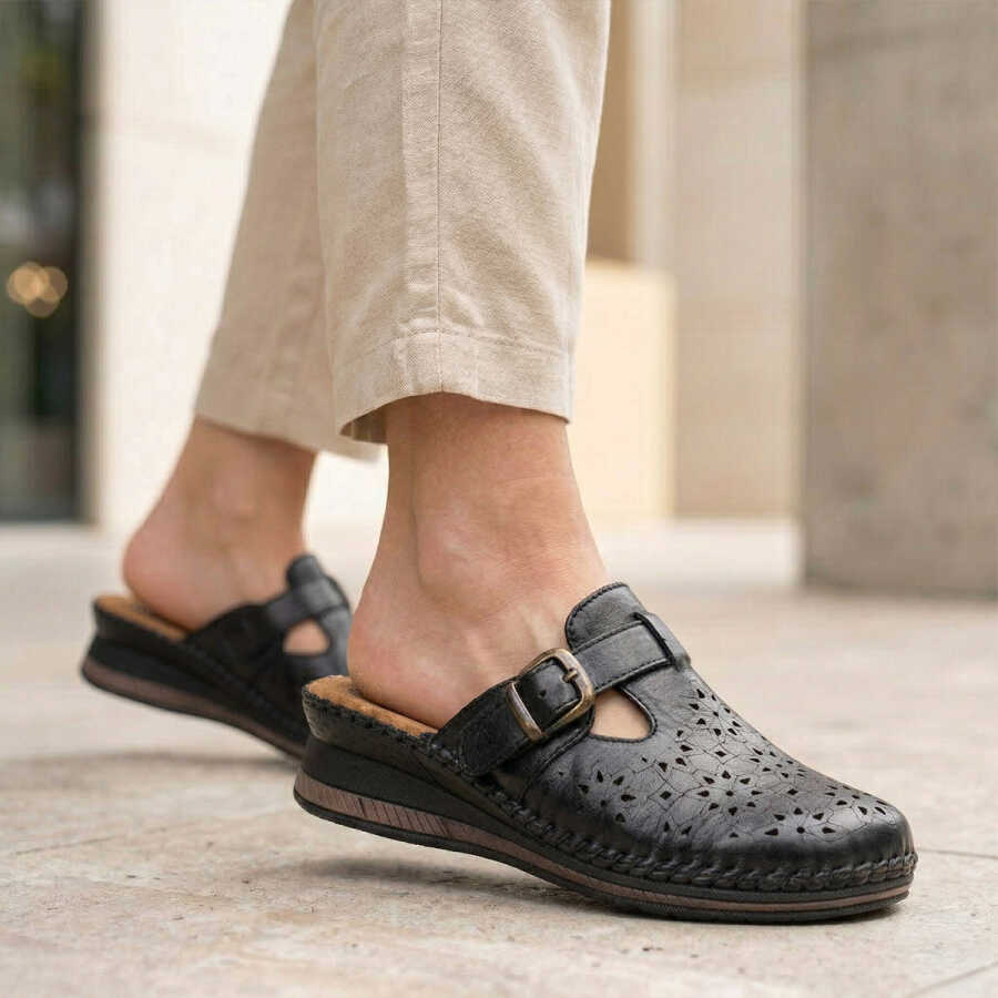 - Forelli 80625 Siyah Hakiki Deri Kadın Sabo Terlik.
