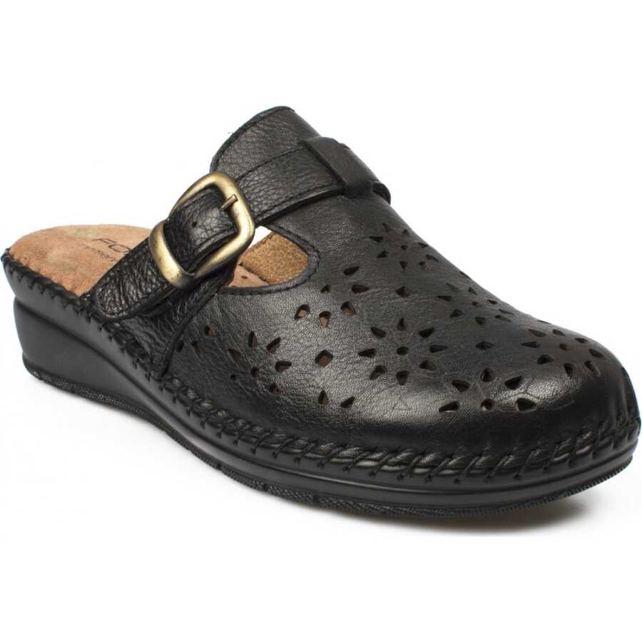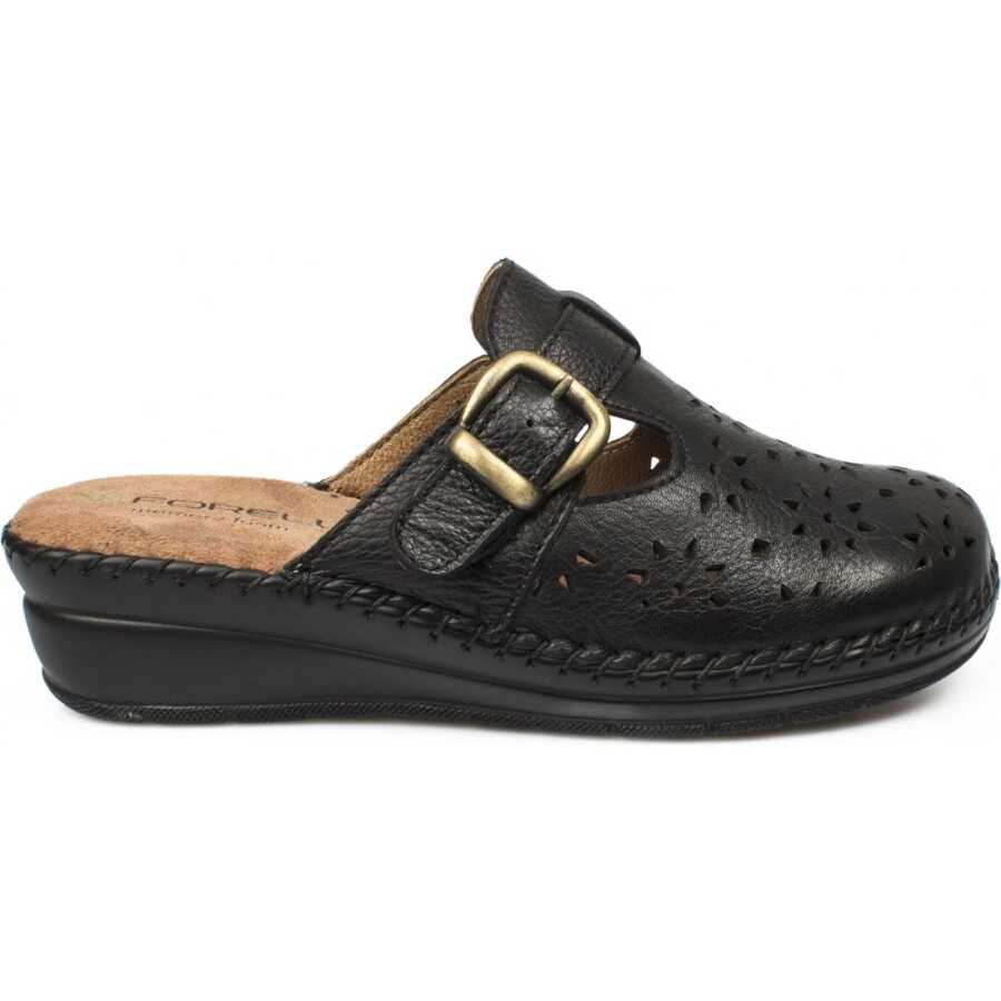 - Forelli 80625 Siyah Hakiki Deri Kadın Sabo Terlik.