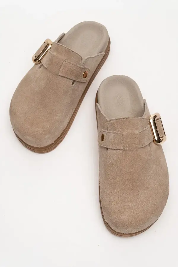 Zeyn 4104 Vizon Süet Kadın Terlik
