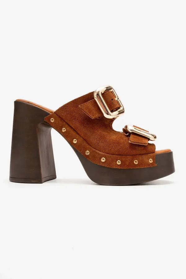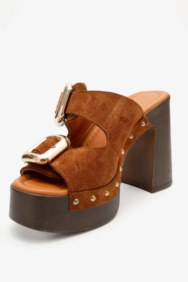 Zeyn 4104 Kahverengi Süet Kadın Terlik