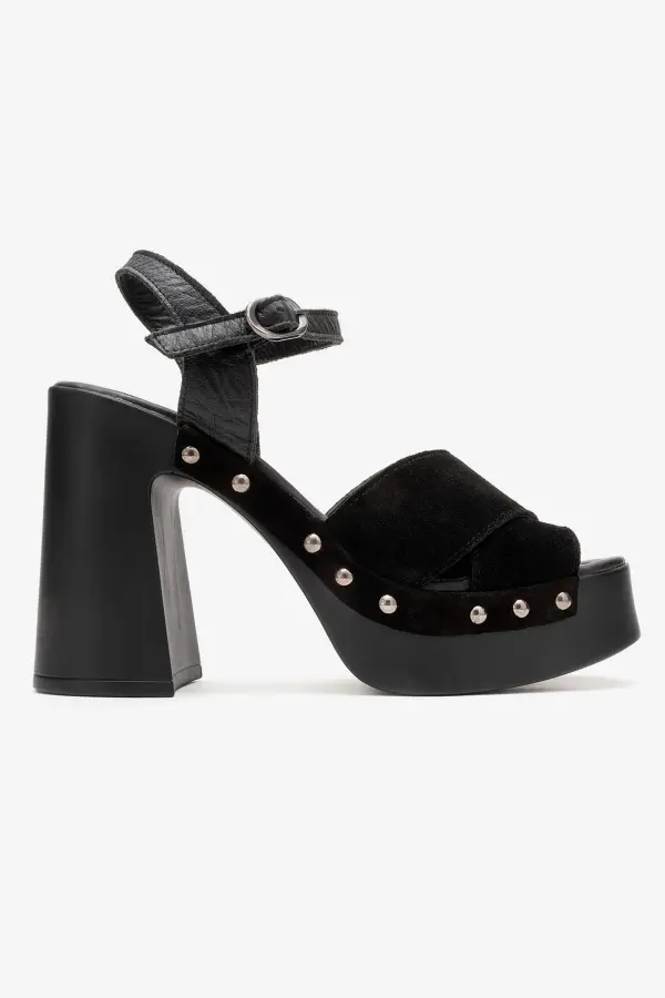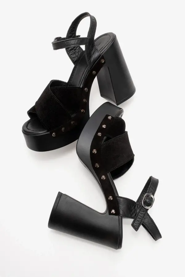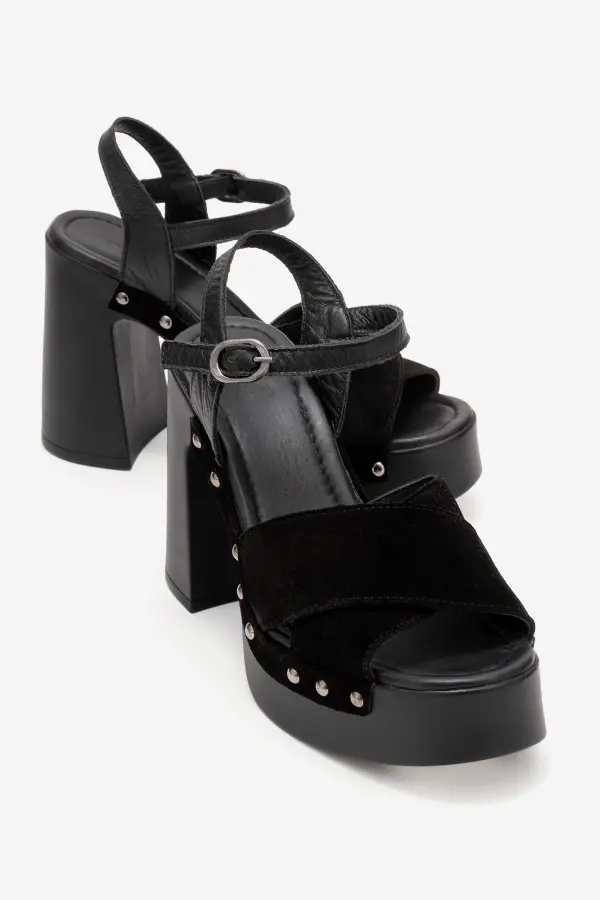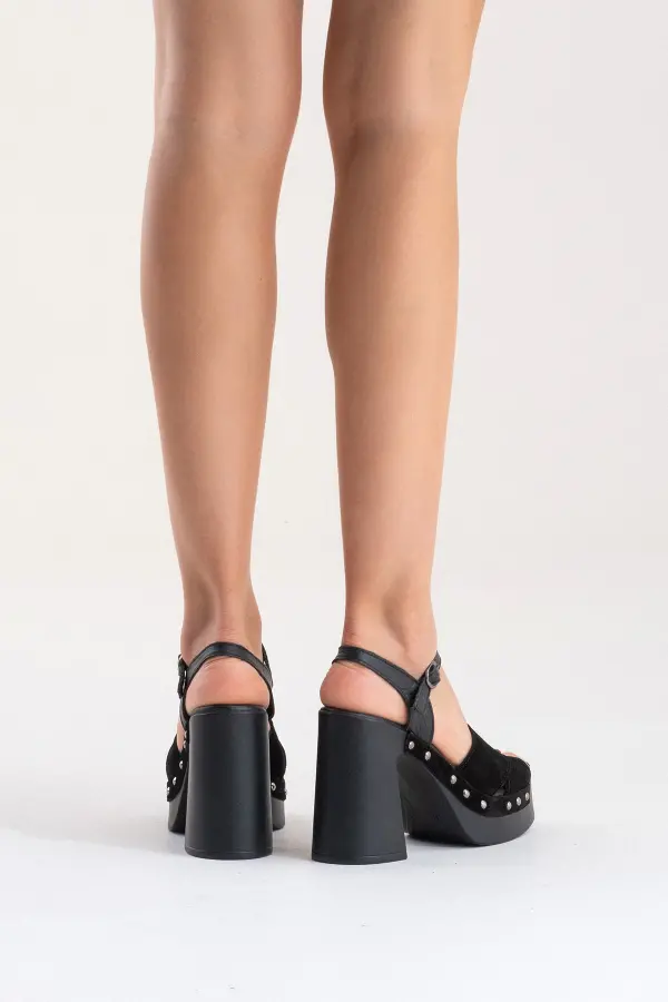 Zeyn 4128 Siyah Süet Kadın Sandalet