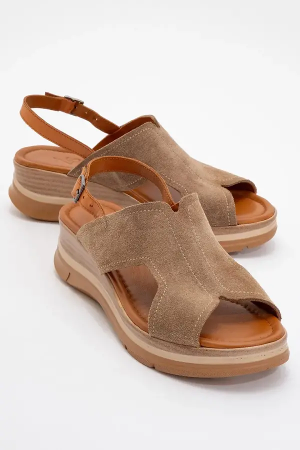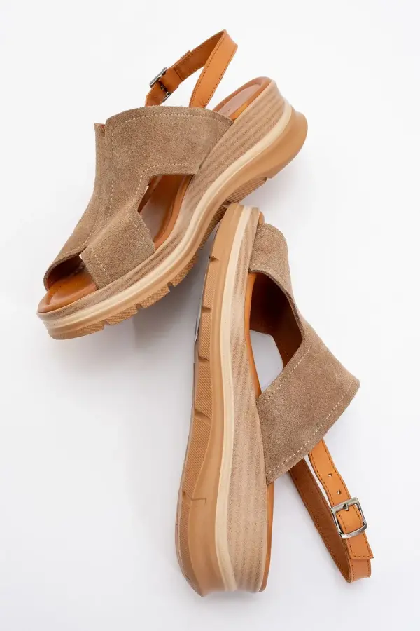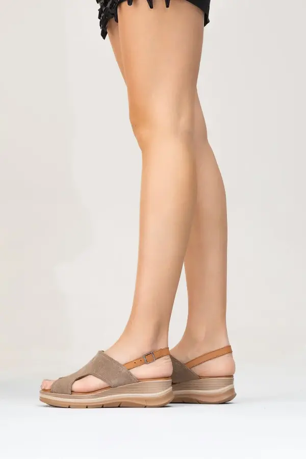 Zeyn 8059 Vizon Süet Kadın Sandalet